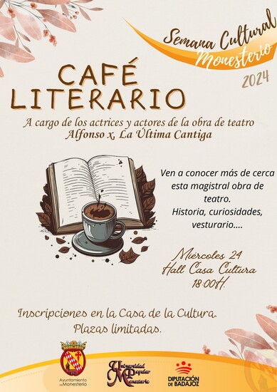 MIÉRCOLES 24 DE ABRIL A LAS 18.00H EN LA CASA DE LA CULTURA: CAFÉ LITERARIO CON ACTORES Y ACTRICES DE LA OBRA DE TEATRO ALFONSO X.